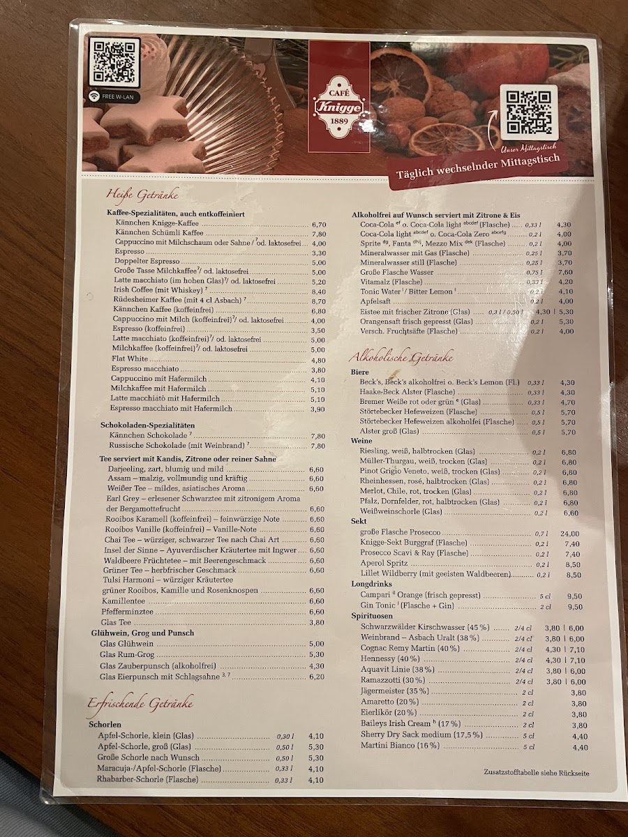 The menu at Cafe Knigge is a celebration of both tradition and innovation. Prepare to indulge in a magnificent selection of pastries and cakes, from classic German specialties to trendy international and dietary options. Whether you're in the mood for a rich chocolate cake that harmonizes its lightness and flavor or a traditional German sweet that transports you to a blissful past, there's something to delight every palate. The Rafaela cake, perfect for celebrations, is both visually stunning and deliciously priced, making it a hit among customers celebrating special occasions.